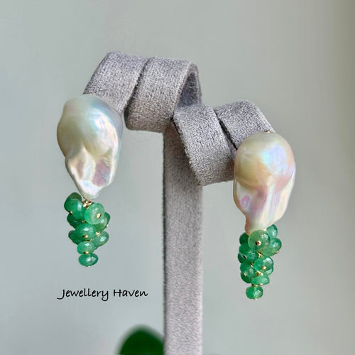 Montana agate with white iridescent baroque pearl earrings (detachable)