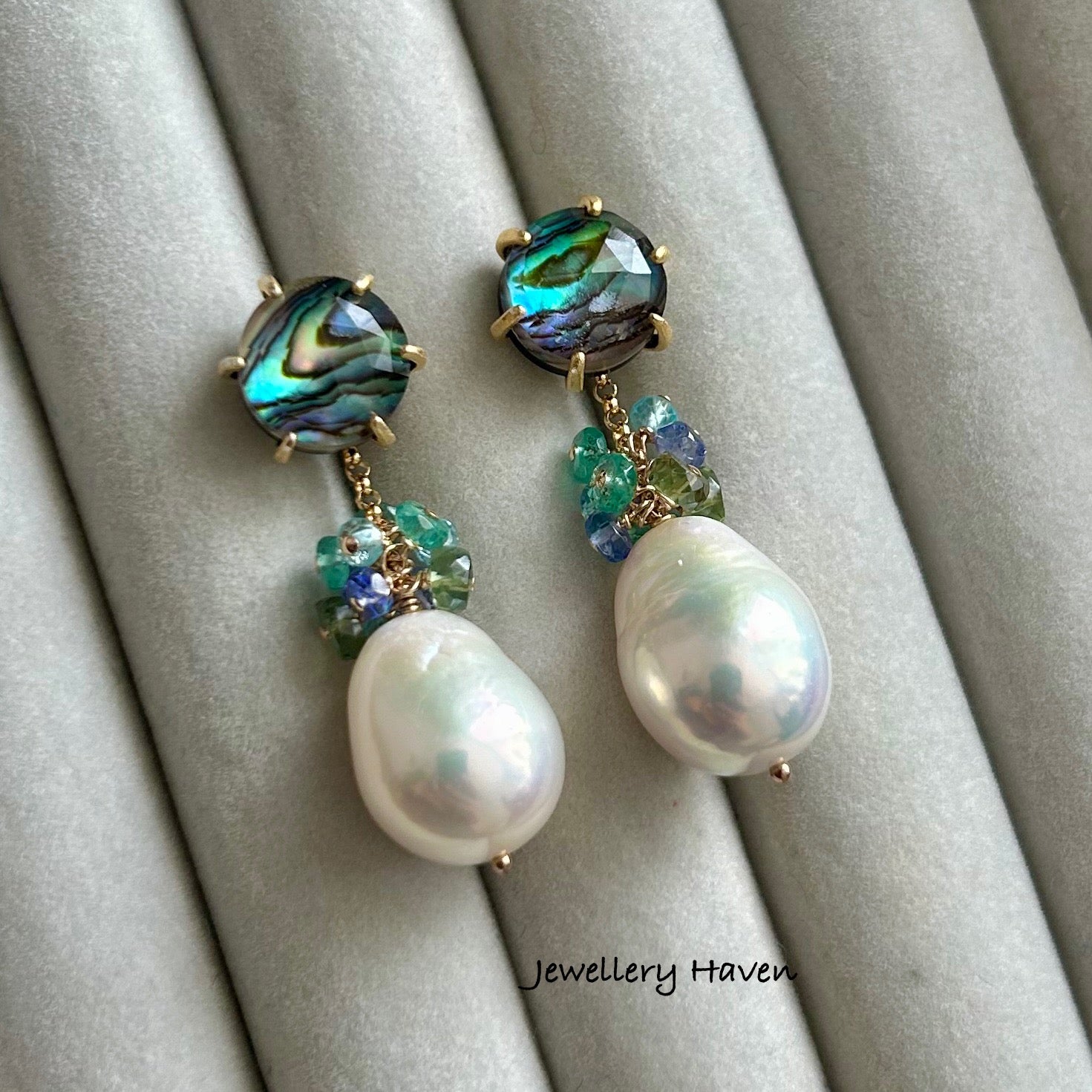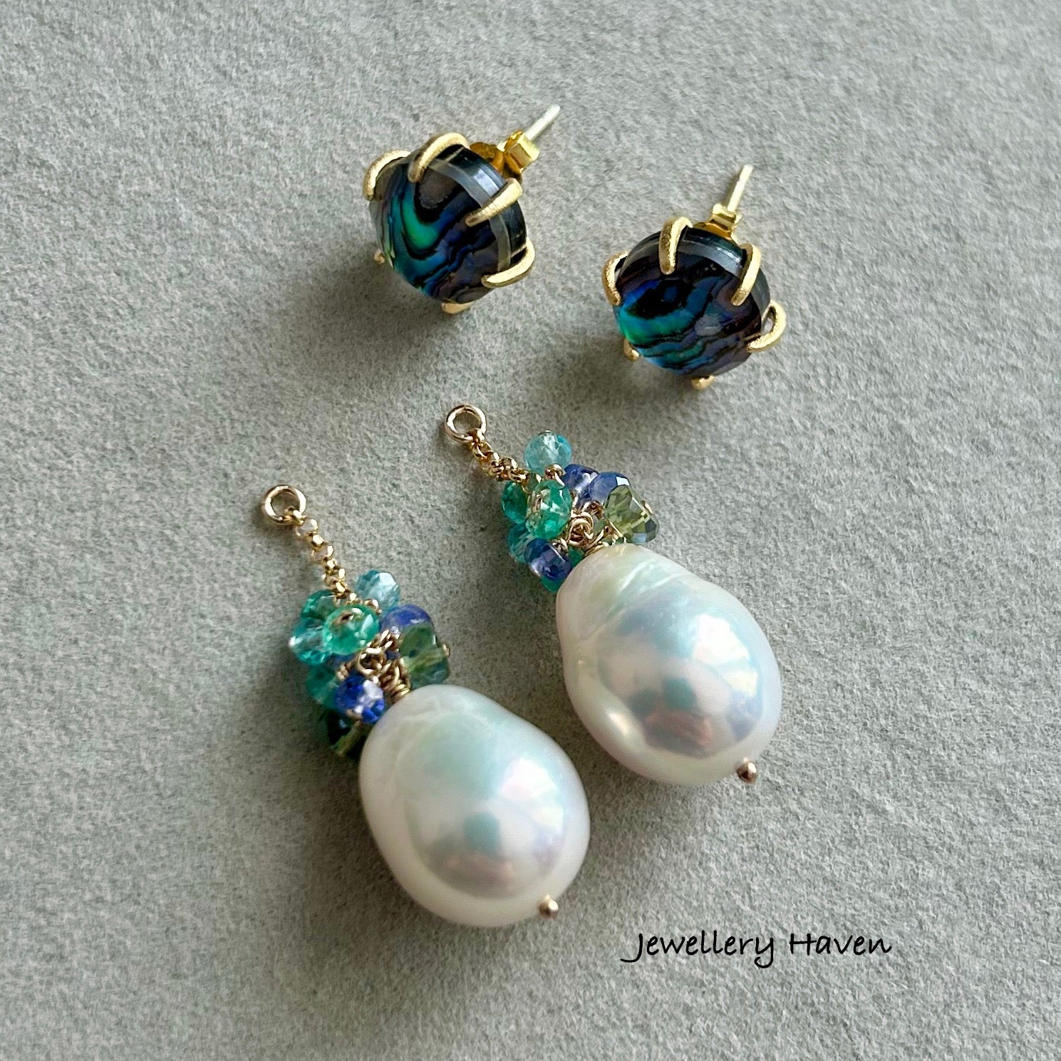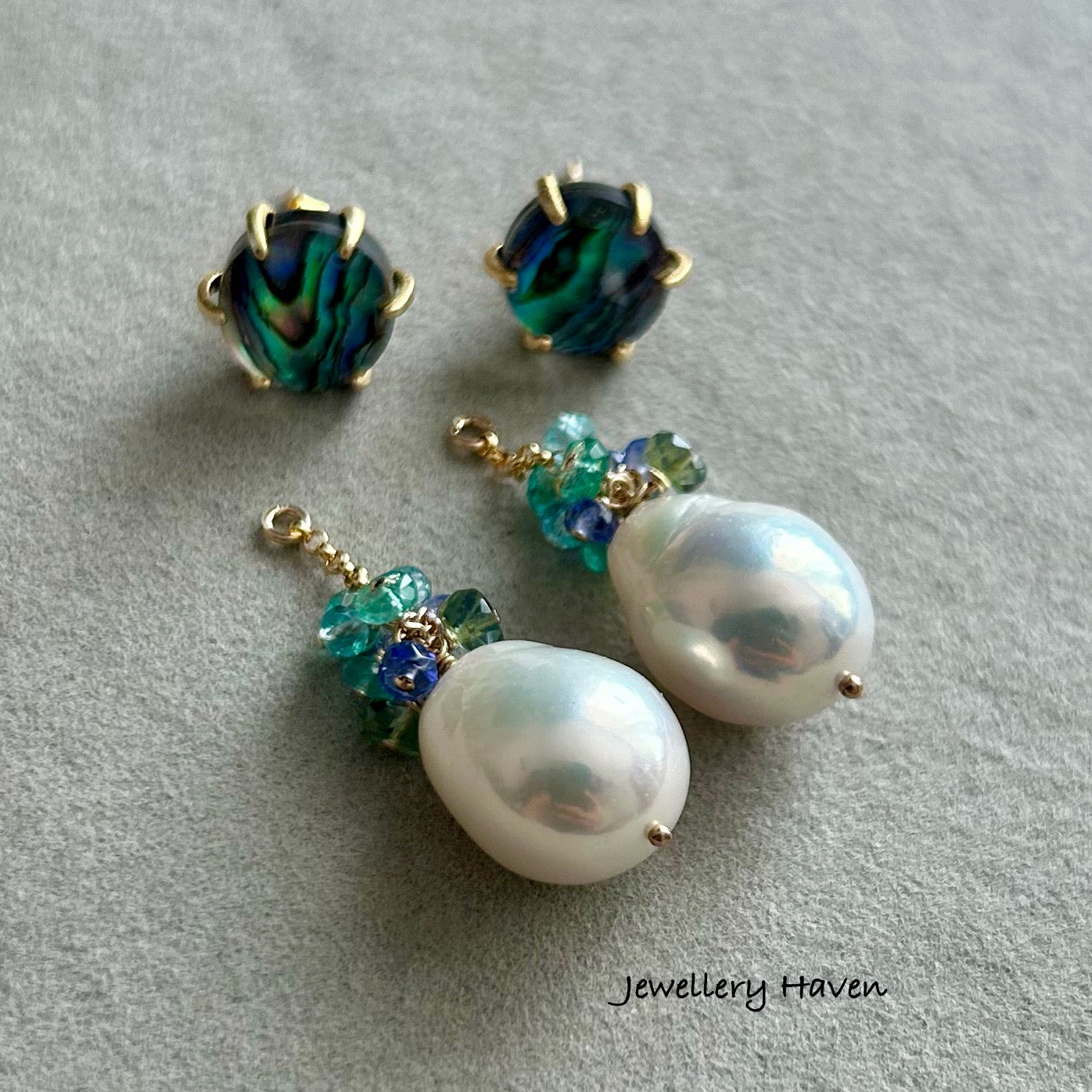 Edison pearl and abalone shell stud earrings (detachable dangle)