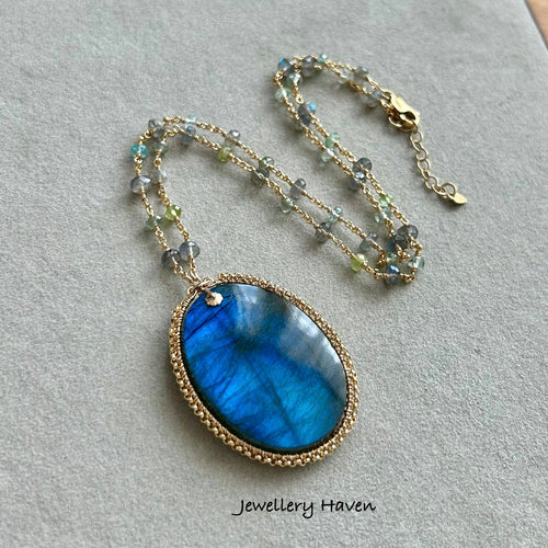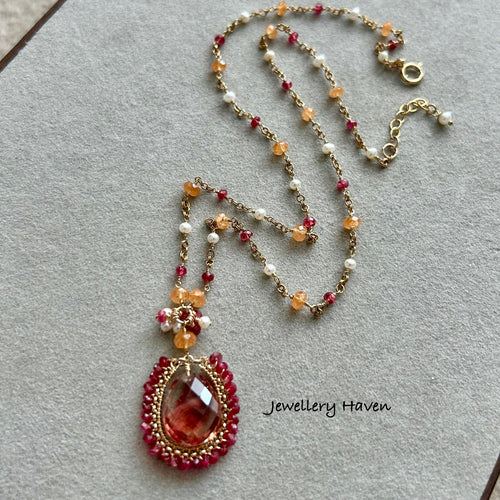 • Ammonite, garnet, Ethiopian opal and tourmaline necklace