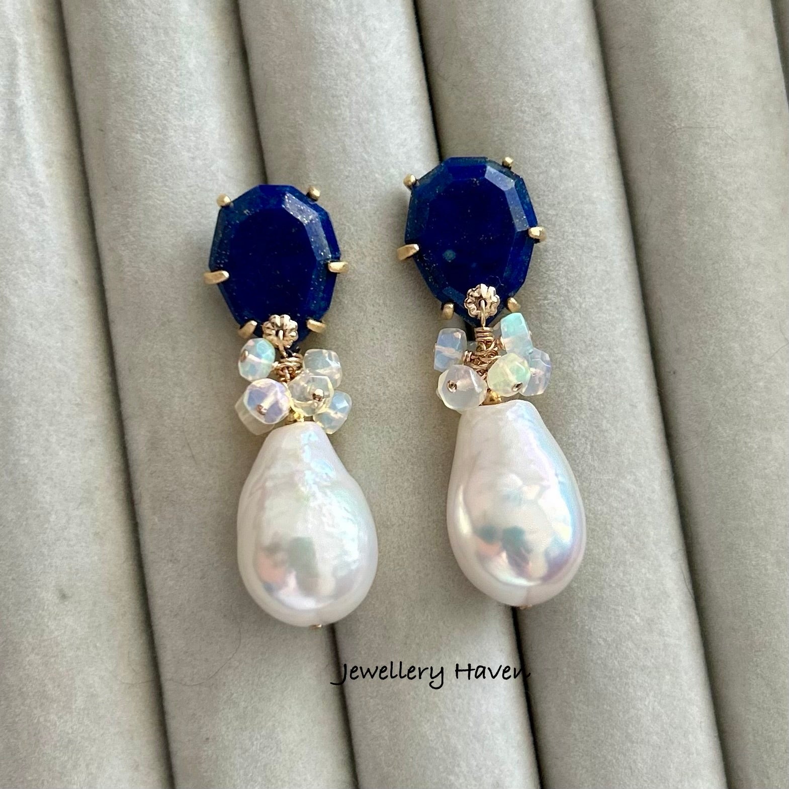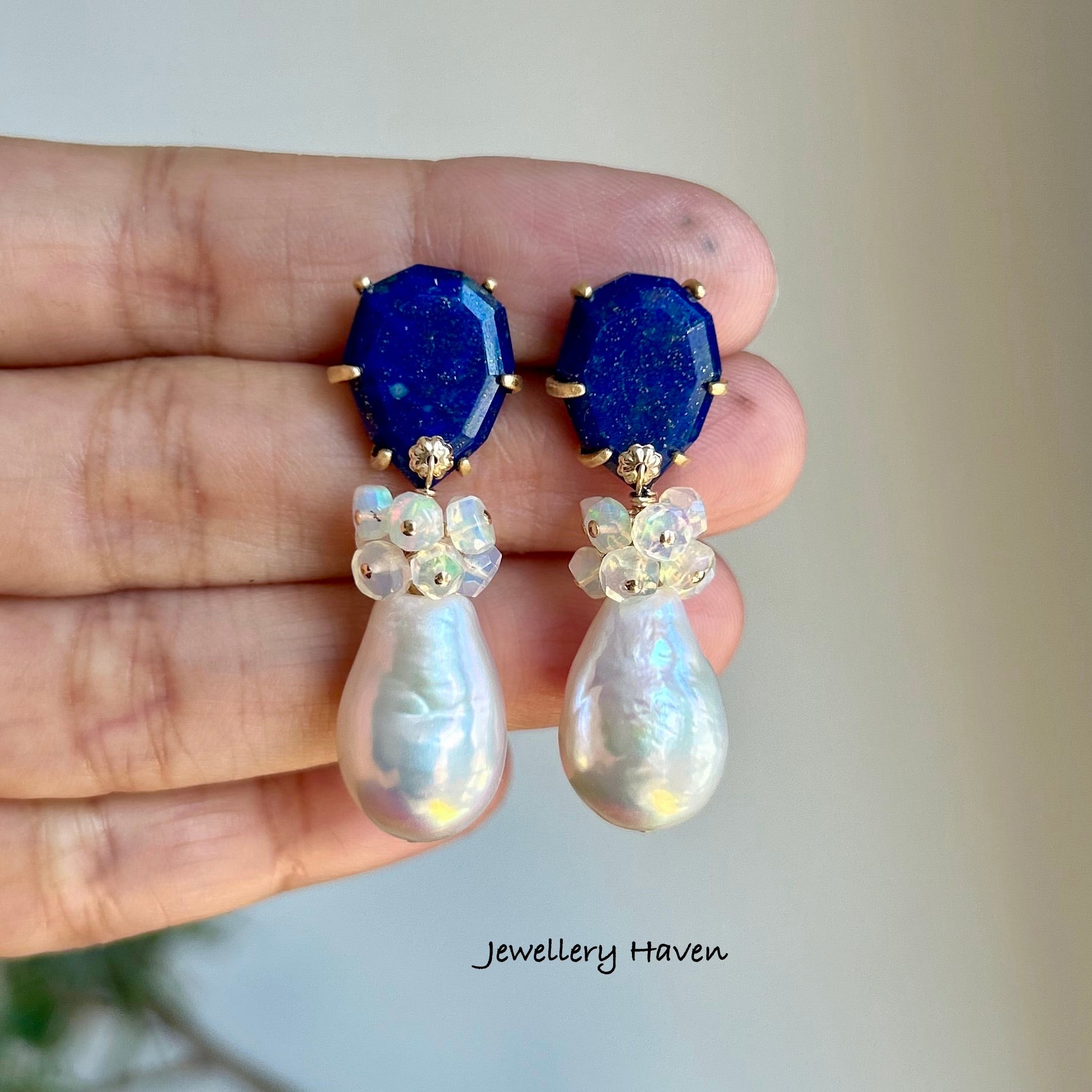 - high quality 14k gold filled components and gold vermeil lapis lazuli studs.