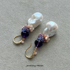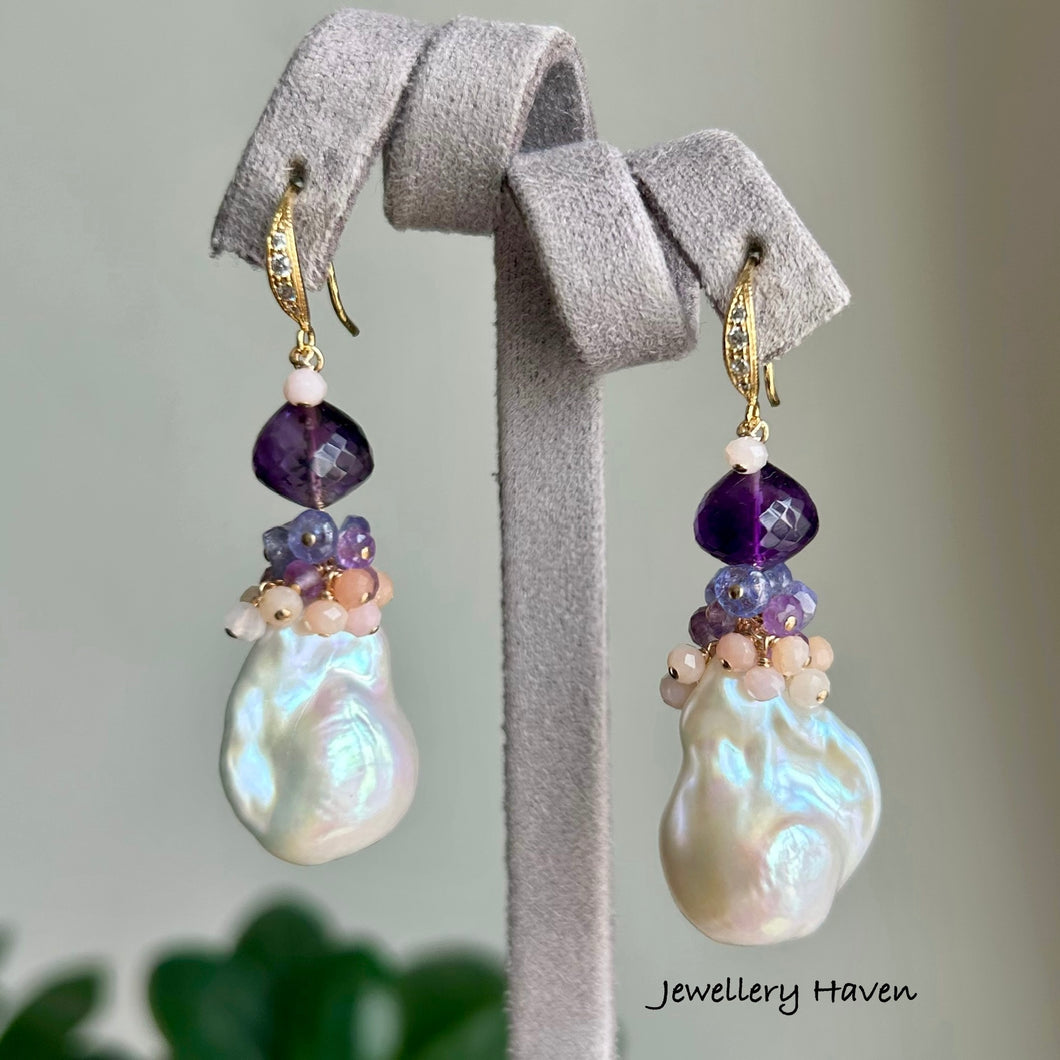 Pinkish iridescent white Baroque pearl earrings